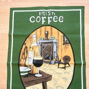 Vintage Irish Coffee Print Linen Cotton Tea Towel