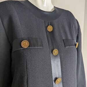 Vintage Irving Samuel Wool Sheath Dress, Gold Buttons, Chanel-Inspired, Size 8