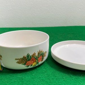 Embrace the elegance of the past with this Vintage Italglass Ceramic Lidded Dish. Adorned with a captivating rose pattern, this round-shaped trinket ring storage box is the perfect addition to your collection. Use it to store your powder, treasures, and even your favorite candies. Its timeless design and functionality make it a charming and practical
