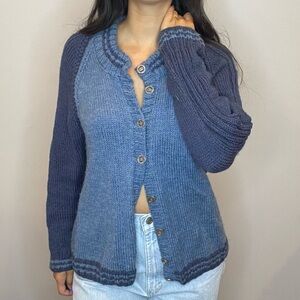 π Vintage Italian Collezion Unisex Cardigan β Two-Tone Blue Knit π