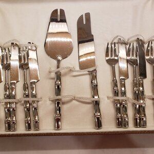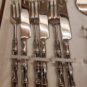 1960s La San Marco Bamboo Silverplated Dessert Cutlery Set
