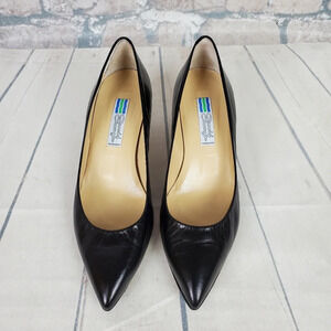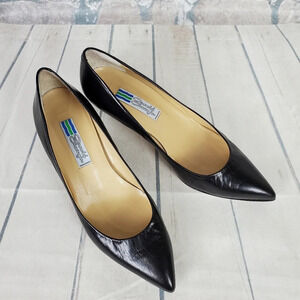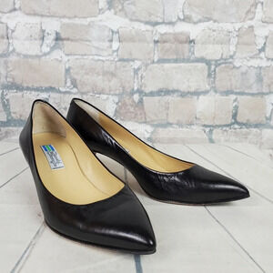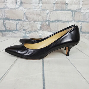 Vintage Italian Leather Kitten Heels Black Leather Pointed Toe Size 40 1/2=9-9.5