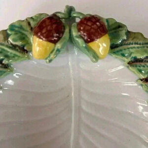 Vintage Italian Majolica Style Leaf Dish with Acorns