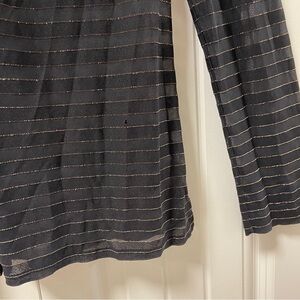 Vintage Italian Sheer Shimmer Button-Up Ribbon Blouse Black Gold