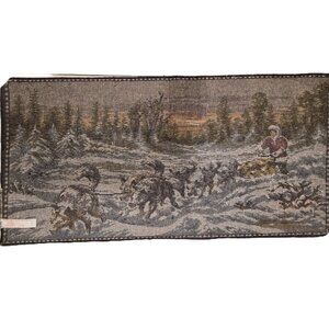 Perfect for cabin-style interiors, vintage textile collectors, or anyone drawn to northern landscapes and traditional sledding motifs. Lightweight and easy to hang.
