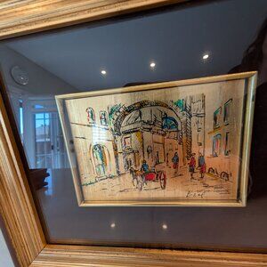 Vintage Italian photo in small town picture made with gold leaf, hand painted