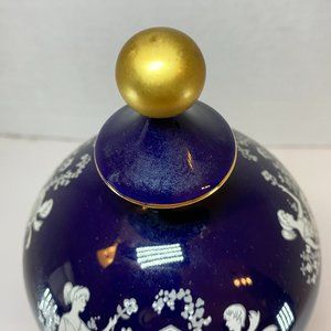 Vintage Italy Florentine Cobalt Blue Ceramic Compote Lidded Dish Greek Couple