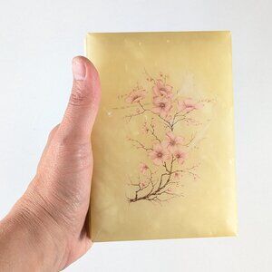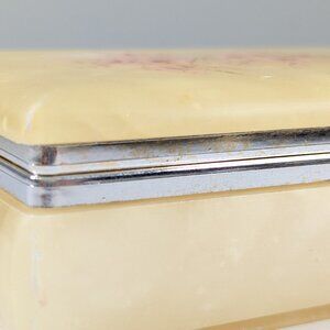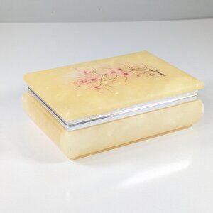 Vintage Italy genuine alabaster trinket box, cherry blossom jewelry storage box