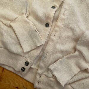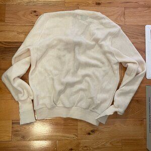 Wool or wool-blend, light cream or colour, ribbed knit cuffs and waistband