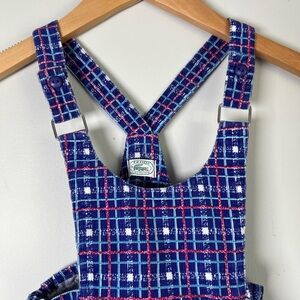 Vintage Izod Lacoste Skirtall Dress Overalls Blue Purple Plaid Rare