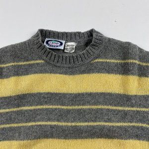 Vintage Izod Lacoste Striped Wool Sweater Women's Medium Gray Yellow