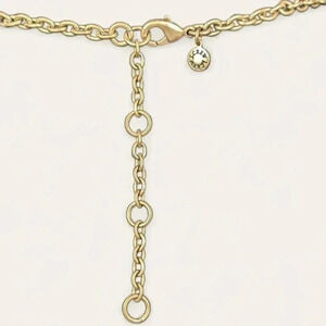 This stunning vintage necklace by J. Crew has a gold tone base, stamped maker's tag, and an adjustable lobster claw clasp. Featuring blue and white crystals/rhinestones and green neon lucite, this necklace catches both light and eyes.