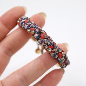 Vintage J Crew x Liberty Fabrics Braided Bracelet Rhinestones Red Blue Floral