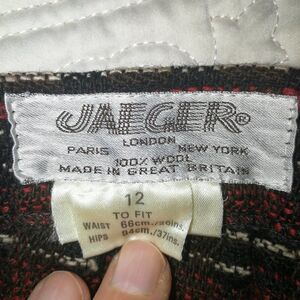 Vintage JAEGER Stripes Red & Black Pleated Wool Midi Skirt Size Medium