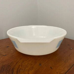 Vintage JAJ Round Casserole dish Matchmaker England Opal Glass Blue Green