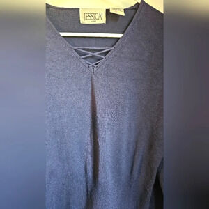 Vintage JESSICA SPORT Navy Blue V-Neck Sweater Size M Sears
