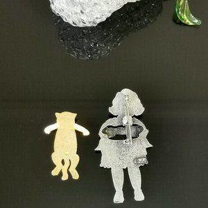 JJ Young Girl with removable Cat Brooch Jonette Jewelry