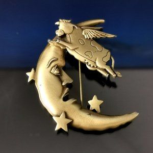 Vintage JJ Jonette -The Cow Jumped Over The Moon Brooch Pin