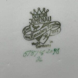 This stunning centrepiece dish is hand painted and made in Germany by JLMeneau Graf Von Henneberg circa 1950s. It is accented in gold. It is sold as a single piece and will be functional as well as beautiful! It will be a lovely vintage addition to your dining collection!