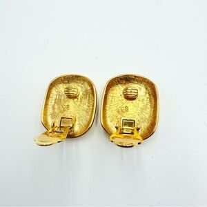 These elegant vintage clip-on earrings by JS Joseph Smith & Sons feature a gold-tone finish with vibrant fuchsia enamel accents. A timeless and bold statement piece, perfect for adding a pop of color to any outfit.