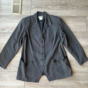 Vintage Jackie K. Wool Blend Leather Trim Blazer Made in Canada