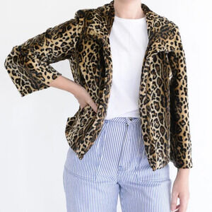 Vintage Jaclyn Smith Faux Fur Fuzzy Leopard Print Crop Mob Wife Jacket S/C