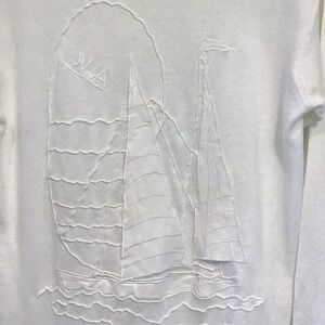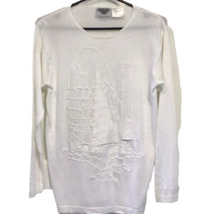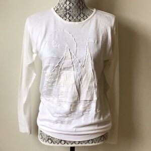 Vintage Jacques Vert Long Sleeve Knit Top With Sailboat Appliqué/ Embroidery