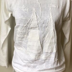 Vintage Jacques Vert Long Sleeve Knit Top With Sailboat Appliqué/ Embroidery