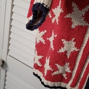 Super thick and heavy sweater with unusual and whimsical red, white and blue patriotic design.