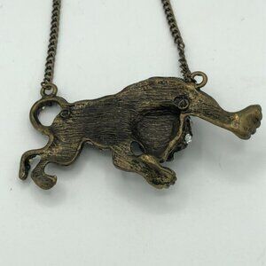 Statement vintage necklace with long chain featuring a jaguar covered in rhinestones.