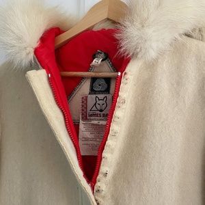 Gorgeous made in Canada vintage James Bay 100% wool coat with fox fur hood. Adorable seals on pockets. excellent vintage condition, these are hard to come by these days. Women’s small $220.