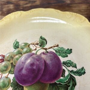 Add a touch of elegance to your dining with this vintage yellow plate featuring a vibrant fruit design. Perfect for any occasion.