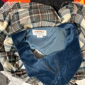 Vintage James Pringles weaver Scottish highland attire. The real wool tartan and the vest is satin lined velvet with lace trim and tie around the middle. In beautiful mint like new condition.
