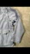 Light blue jacket with multiple pockets. Military-inspired design. Button and zipper details.