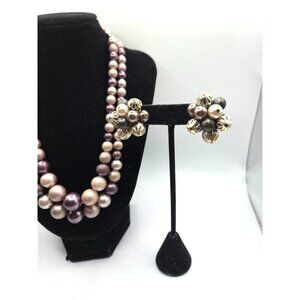 Vintage Japan 2-Strand Graduated Pearl Necklace & Earrings Mauve/Plum Set