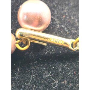 Lovely vintage 1950s–60s Japan signed demi parure featuring a two-strand graduated faux pearl necklace in soft mauve, plum, and champagne tones, paired with coordinating cluster clip-on earrings. Necklace is marked “Japan” on the hook clasp and measures approx 18" with extender earrings 1" clip on. Pearls are graduated in size and display a rich luster with beautiful coloration. Earrings feature matching beads with ornate gold-tone filigree caps. All pieces in very good vintage condition with firm findings. Classic mid-century elegance perfect for bridal, prom, or vintage glam styling.