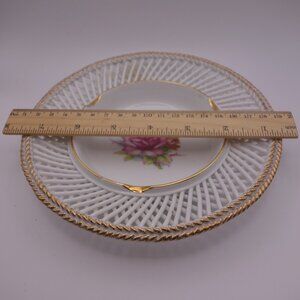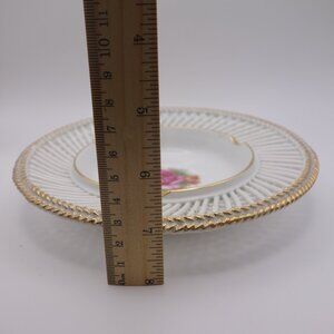 Japan Ceramic Ash Tray with Gold Trim and Waffle Border and Rose Design Center
