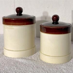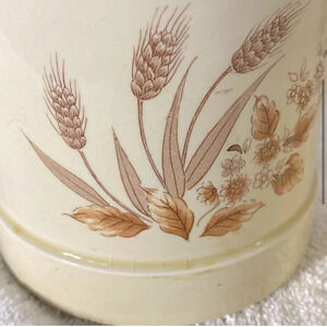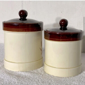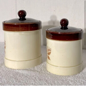 Vintage Japan Ceramic Brown Cream Crock Canisters With Wheat Pattern x2