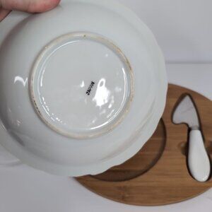 Vintage Japan Ceramic Wood Platter Knife Cheese Charcuterie Serving Set