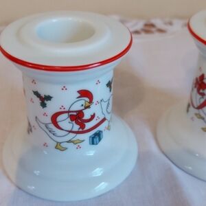 Sweet set of 2 vintage candle holders. 2 5" tall. Opening for candles 1" in diameter. Excellent condition no chips or cracks.