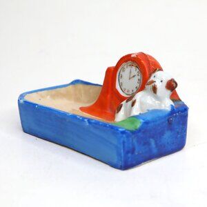 Vintage Japan Lustreware Ashtray Figural Dog & Clock Retro Ceramic Trinket Dish