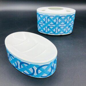 Vintage Japan Porcelain Bathroom Accessory SET - Toothbrush Holder - Soap Dish