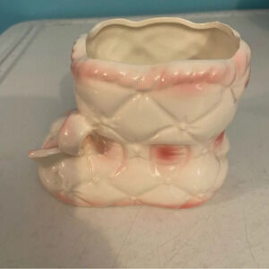 Vintage Japan floral line baby girls ‎ ceramic shoe planter
