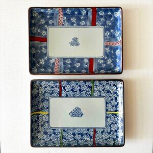 Vintage Japanese Arita Ware Porcelain Plates Set of 2 Sakura Floral Rectangular