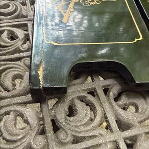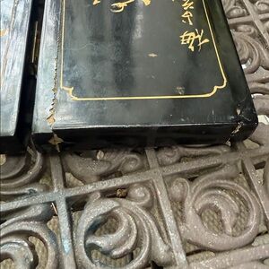 Vintage Japanese Black lacquer w mother of pearl Folding Screen Geishas 18”x14”