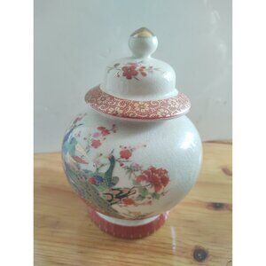 Vintage Japanese Ceramic Peacock Ginger Jar by Satsuma 6"