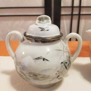 Vintage Japanese Kutani Eggshell Porcelain Milk Jug & Sugar Bowl - EUC