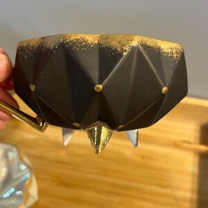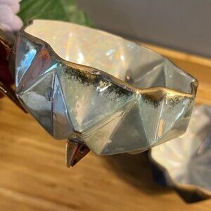 Vintage Japanese Lusterware iridescent Set of 2 tea cups art deco light green grey and black with gold dots hand painted . no chips or cracks. Made in Japan . Hard to find.