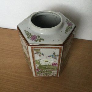 Vintage Japanese ceramic hexagonal shape jar flowers and birds decoration