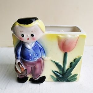 Vintage Japanese ceramic container that could be a vase, planter, container. 4D-54 Japan is printed on the base.